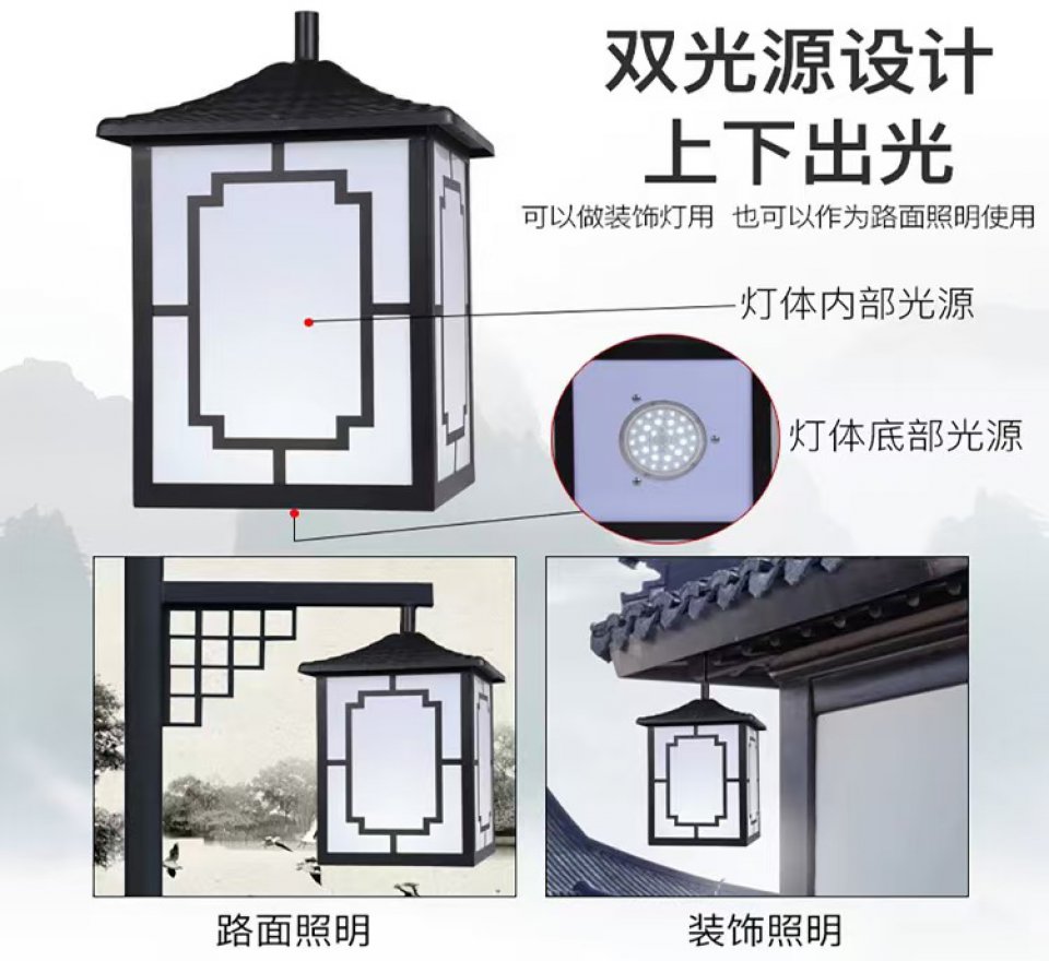 新款太阳能接电两用led庭院灯户外防水中式走廊复古别墅景观灯