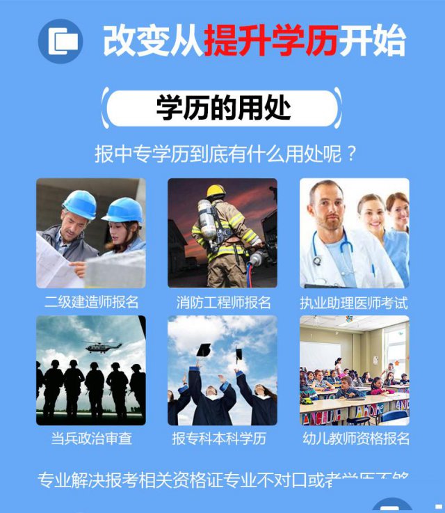 一年制电大中专,仅需10个月左右时间,你可获得国家承认的中专学历,可用于找工作、报考大专、建造师、健康管理师、幼师资格证、公务员等等,用途非常广泛,是一个性价比高的学历证书。滚动注册。