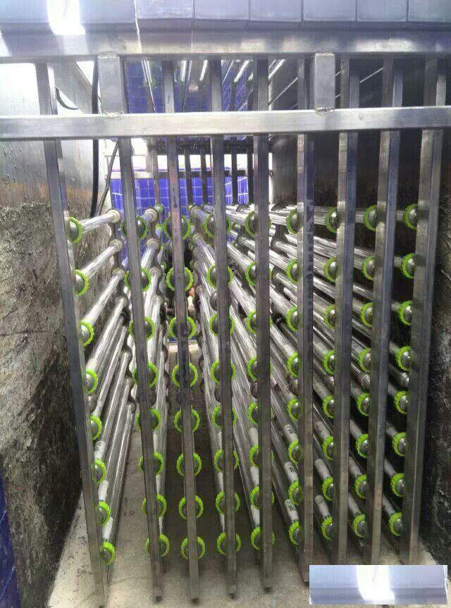 1982年加拿大某公司发明了世界上第一套明渠式安装的紫外线消毒系统,并引进了模块化紫外线消毒系统概念,即紫外线系统可由若干独立的紫外灯模块组成,且水流靠重力流动,不需要泵、管道以及阀门。系统维护可对单个模块进行,且紫外灯模块可轻易地从明渠中直接取出进行维护检修,维护时系统无需停机,可继续运行消毒,因而无需备用设备,如果需要对明渠进行清理也很方便。模块化明渠式消毒装置大大降低了紫外线污水消毒的成本并使得系统维护简单方便。同时,当污水处理厂在扩建或改造时,只需适当增加紫外灯模块的数量,而无需添购整套系统,可以节省设备投资,使用起来非常灵活。这一发明得到了污水处理厂的欢迎,大大推动了紫外线消毒技术在城市污水消毒处理中的应用。目前在世界各地已经有3000多家城市污水处理厂安装使用了紫外线污水消毒系统,其中95%以上的系统采用了明渠式模块化紫外线系统的创意。