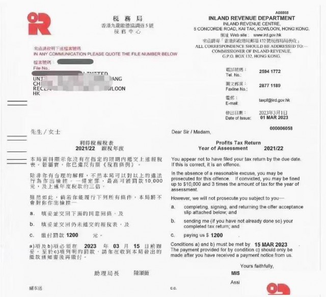 【香港公司收到税局下发的罚款信我们该如何处理?】
