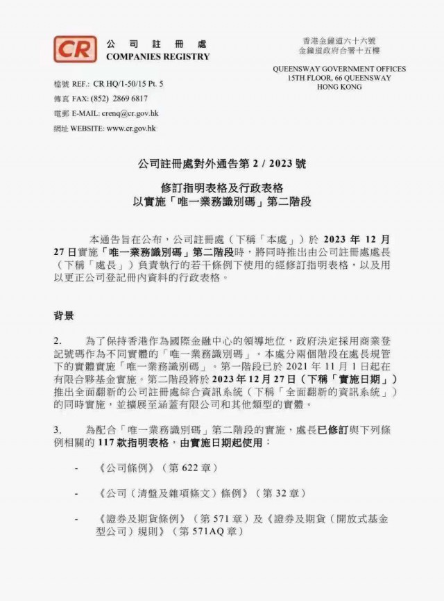 香港公司双证合一,商业登记证BR将作为公司唯一有效的识别码。