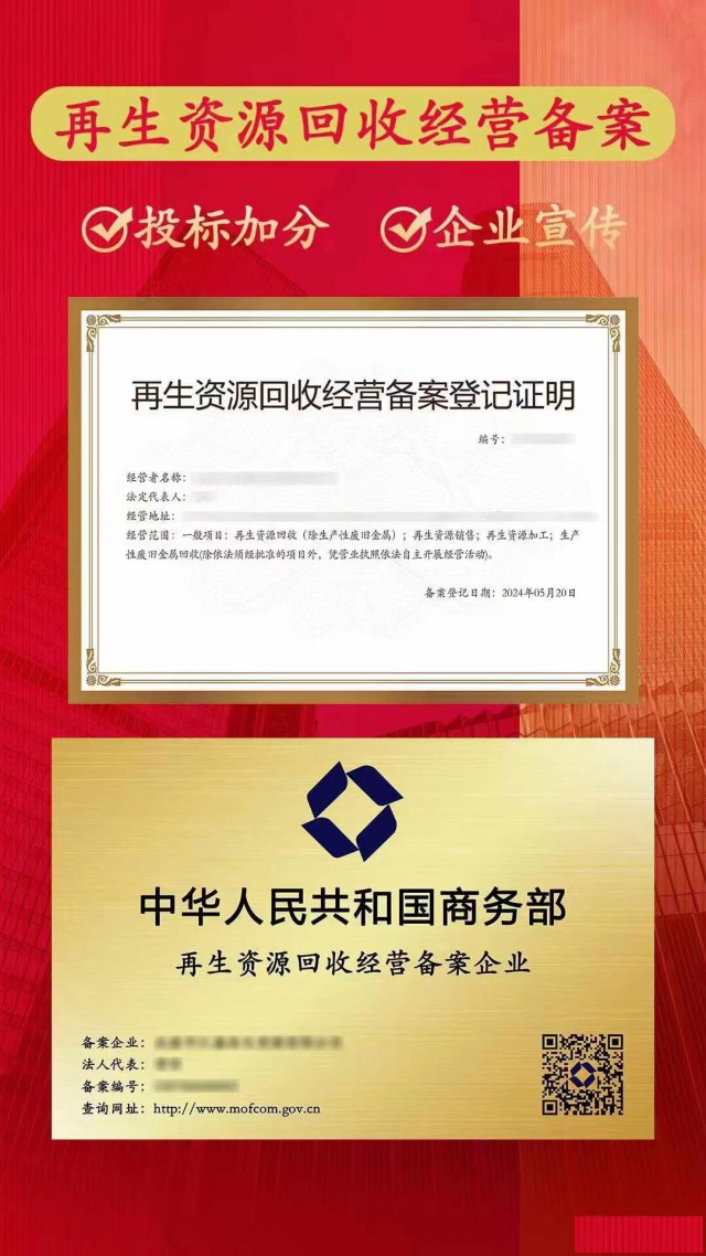例如:“再生资源回收、销售;废旧金属回收、加工;电子产品回收处理等。”