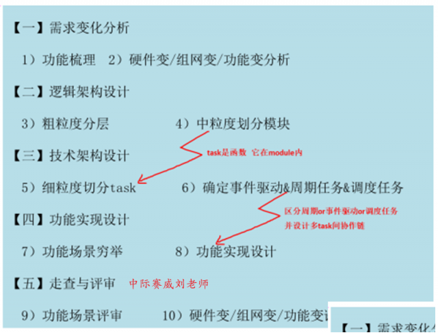 六、研发管理——架构工作规范。1五阶十步方法: Layered Multitask Method总结,方法要点,方法逻辑。2架构文档标准:《嵌入式软件架构设计说明书》文档模板(可提供.doc文件电子版)。3架构评审与验收要点:Checklist评审法,场景评审法,对标评审法, 架构评价实际案例。