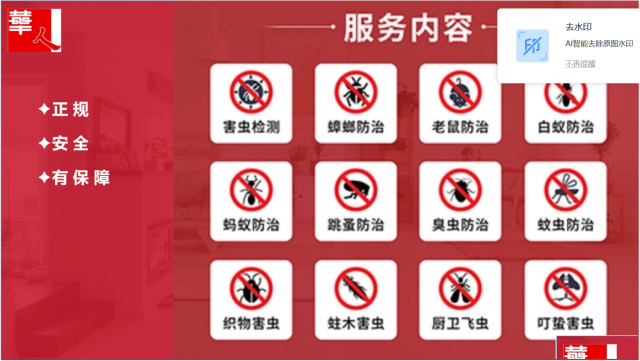 解决病媒困扰,提高生活品质,让我们为您打造一个真正健康、安全、舒适的生活环境。如果您也有消杀、除四害的需求,那就联系我们吧。