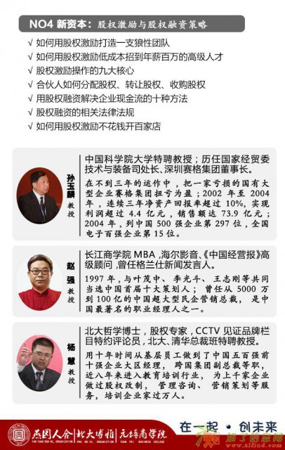 杨慧 教授 北大哲学博士,股权,CCTV见证品牌栏目特约评论员,北大、清华总裁班特聘教授。用十年时间从基层员工做到了中国五百强前十强企业大区经理,跨国集团副总裁等职,近八年来进入教育培训行业,为上千家企业做过股权改制,管理咨询、营销策划等服务,培训企业家过万人。