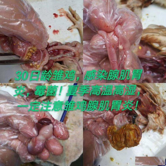 炎热夏季,高温高湿,腺肌胃炎是最常见的一种病。最近接诊雏鸡病例当中发病率是最高的,不管是规模化育青年鸡户还是普通养殖户,最近都在这个问题上吃了大亏,并且发病日龄早于滑液囊支原体,出现有腺肌胃炎,如不及时对症治疗,造成免疫抑制,出现滑液囊与腺肌胃炎混感时,严重影响鸡群早期增重!