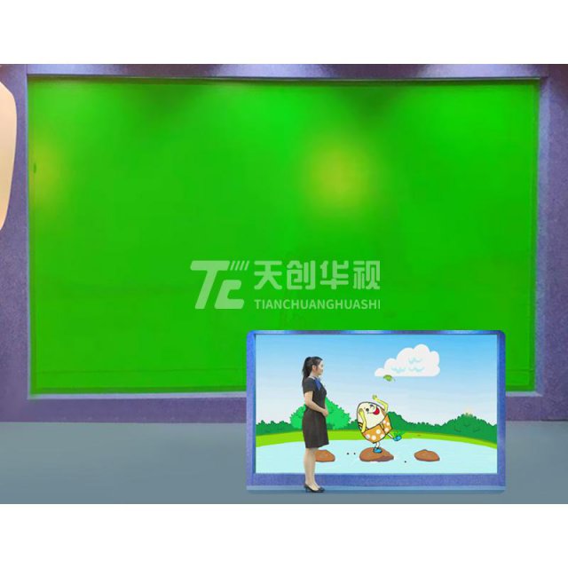虚拟演播室采用先进的图形算法和技术研发出来的虚拟演播室系统。通过传感系统摄像机各种参数并传递给虚拟演播室计算机处理系统,该处理系统根据传感参数实时产生一个有空间感的虚拟场景,并与演播主体之间保持一致的空间关系。视频键器对摄像机获得的前景信号与虚拟演播室系统产生的背景信号进行处理,从而实现演播主体(播音员、演播人物等)与虚拟场景的合成。因为虚拟演播只需在一个蓝色背景下进行,利用它进行节目制作与播出,无需为不同的节目搭建不同的演播室或场景,所以在有效利用演播室资源方面,成本优势是显而易见的。还可以与非线性编辑系统结合使用,将虚拟演播的节目直接输出到非线性编辑系统中进行编辑播出,并可将编辑结果记录到网络共享存储器中,实现演播资源共享。虚拟演播室技术是在传统色键抠像技术的基础上,充分利用了计算机三维图形技术和合成技术,根据位置与参数,使三维虚拟场景的关系与前景保持一致,经过色键合成后,使得前景中的主持人看起来浸尽于计算机所产生的三维虚拟场景中,而且能在其中运动,从而创造出接近真实的、立体感很强的电视演播室效果。