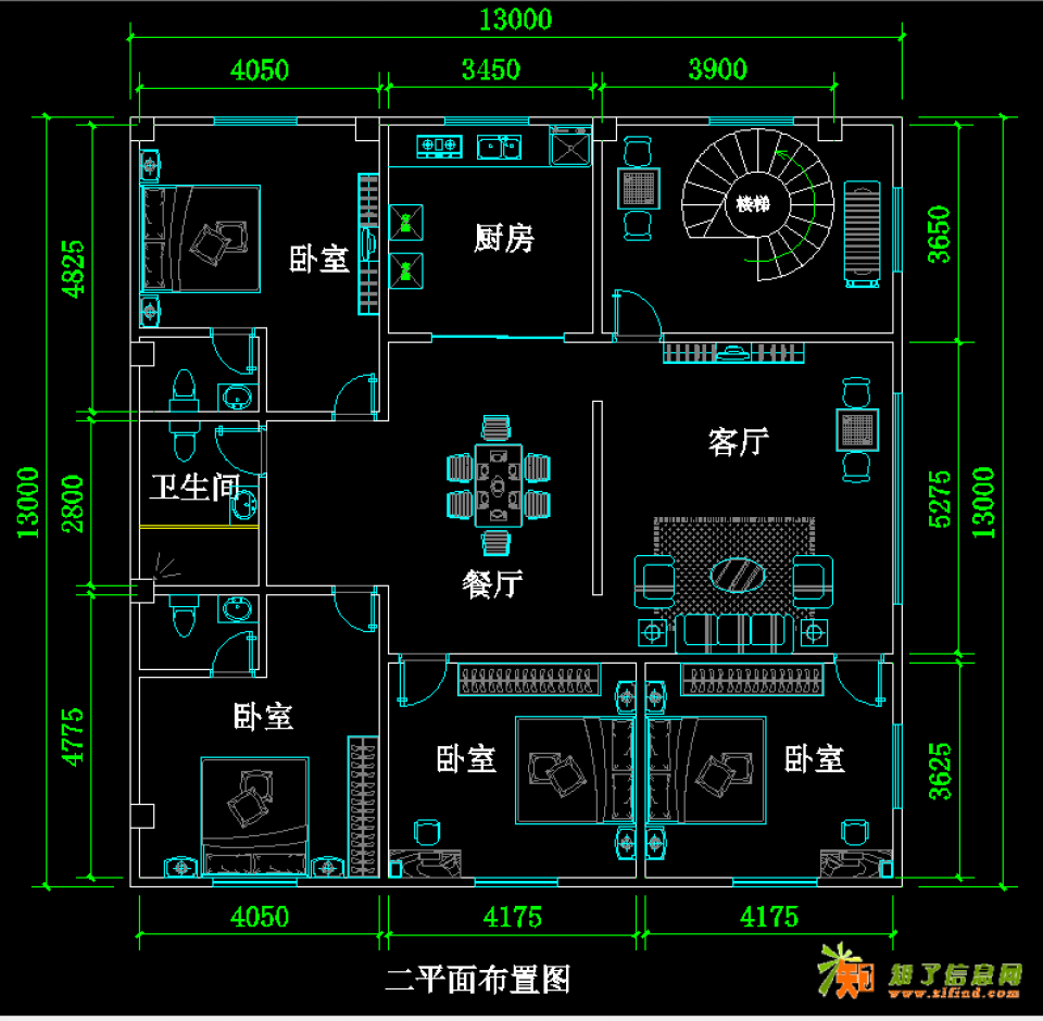 3.三维图纸输出:2维平面图转画成3D三维图。