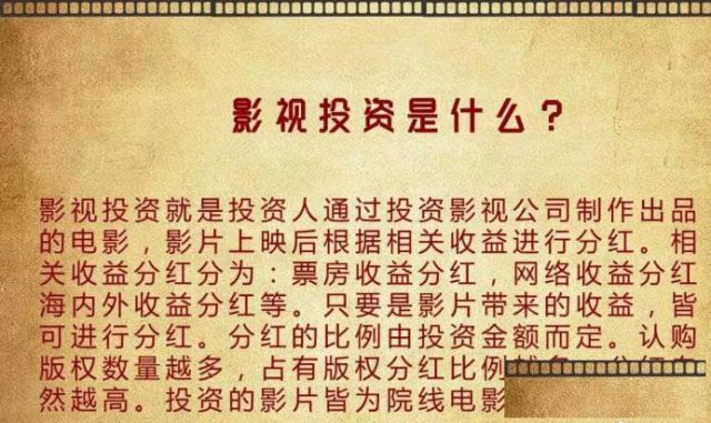 目前电影市场处于黄金期,国家在大力扶持行业发展,鼓励个人参与投资,整个行业充满前景,越来越多投资人把目光转向电影市场,参与影视投资就成了一个不错的理财方式。很多人心里都有个疑问,影视投资收益究竟如何?今天我就总结一些电影成功获利的案例,以供大家参考!