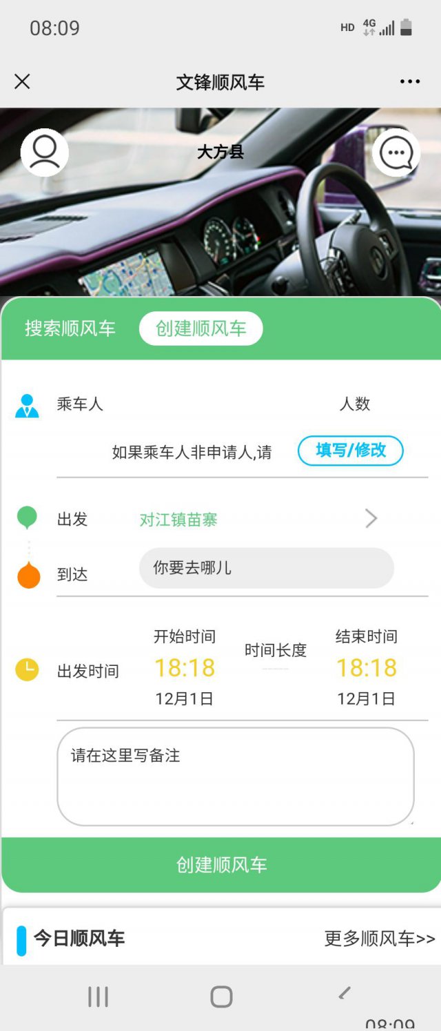 车辆选择包含选择停在本单位内的车辆,和选择停在单位外的车辆,可以选择是否带专职司机。