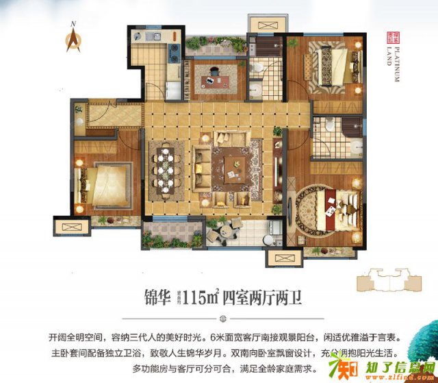 115㎡ 四室两厅两卫 6米宽景超大采光阳台