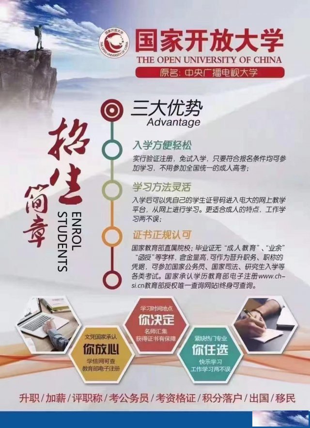 费用便宜:与其他成人教育相比,开放教育属学费最低,报考量大;
