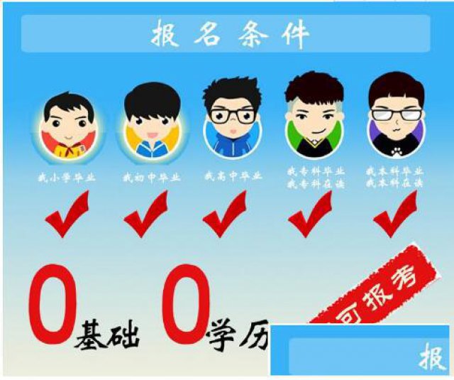 凡具有国民教育系列大学专科以上学历者(或大专在读),均可报名参加本专业考试。