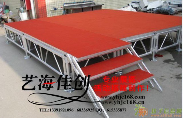组成:木板面舞台采用18mm厚的有机玻璃(或钢化玻璃)以及高硬度铝合金框架构成