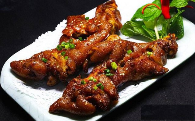 烤猪蹄,是一种新的特色烧烤菜肴。色、香、味具佳,一经推出就受到了广大食客的追捧。猪蹄含有丰富的胶原蛋白质,脂肪含量也比肥肉低,一直是深受广大食客们热捧的美食佳品之一,在民间人们把猪蹄称为“美容食品”,可以与熊掌比拟。秉承了国人的传统饮食文化,又在此基础之上突破了传统的烹制方法。烤猪蹄是把猪蹄与烧烤完美结合起来,而推出的一道人间美食。