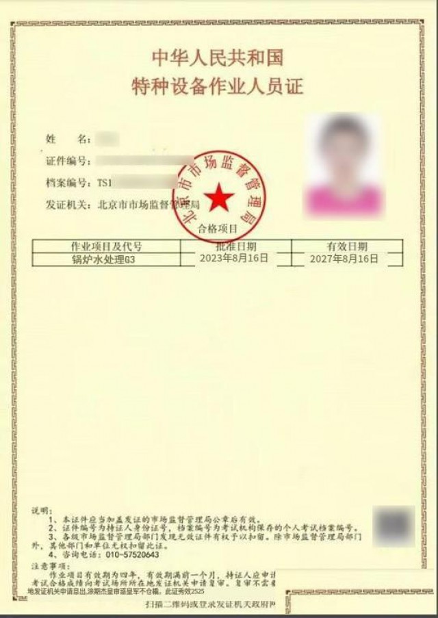 证书级别:二级锅炉司炉,通用燃煤燃油燃气