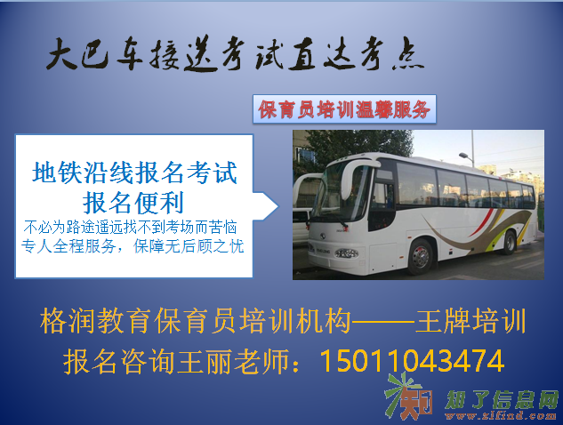 考试当天,未了避免学员迟到或者路线不熟悉等原因,本着对学员负责的认真态度,考试有大巴车接送,考试后可以免费安排工作
