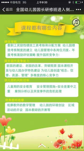 具有教师资格证,大专以上学历。有一定幼儿教育工作经验、想进修、提高自身能力的老师及欲从事管理工作的在职工作人员。