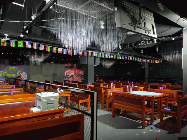 旺铺总面积600平米,一个大平层,精装修,三相电、上下水齐全,有独立卫生间,经营酒吧行业,现空置中。店铺为一个通间,屋内分为多个区域。内部设备设施齐全,设有实木桌椅若干、新风系统、中央空调、吧台、展示柜、冰箱冰柜、消毒柜等等以及整套监控设备。门口有两处大型停车场,交通便捷、南北贯通。
