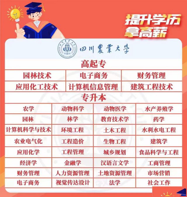 四川农业大学、中国传媒大学、北京邮电大学、东北师范大学、中国科技大学、西北工业大学、大连理工大学、中国地质大学、西安电子科技大学、吉林大学等近百所学校可供选择。