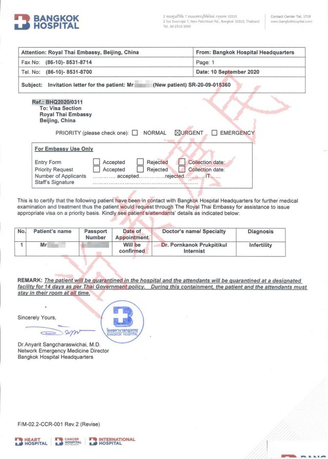 下面是一对夫妻申请去泰国曼谷医院是管婴儿,批准后的全部文件: