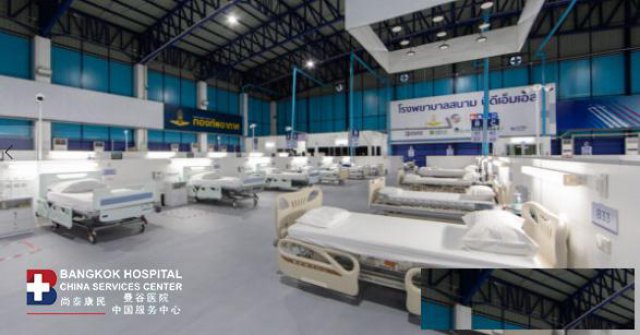 为了和国家共同抗疫,曼谷医院集团与泰国皇家空军耗时两周建立“战地医院”(类似中国的方舱医院)以容纳新冠肺炎感染者,地点设在泰国皇家空军体育中心,距离廊曼机场只有几公里,以此缓解曼谷北部地区人民的新冠治疗压力。