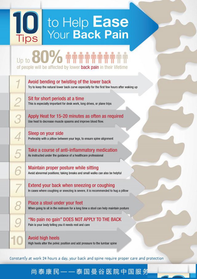 人的一生中,多达80%的人将受到腰背疼痛的影响,为此,曼谷医院国际医院骨科中心给出一些生活小贴士,帮助大家缓解腰背疼痛,和尚泰康民(曼谷医院服务中心)一起看看吧。