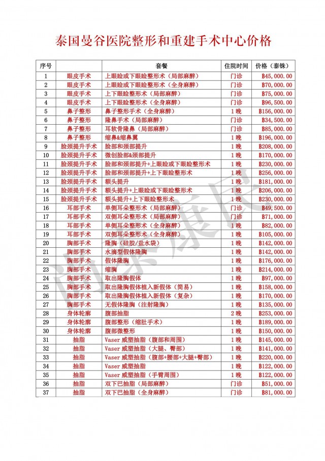 5、按照曼谷医院外科医生的建议,在术前应禁食禁水;