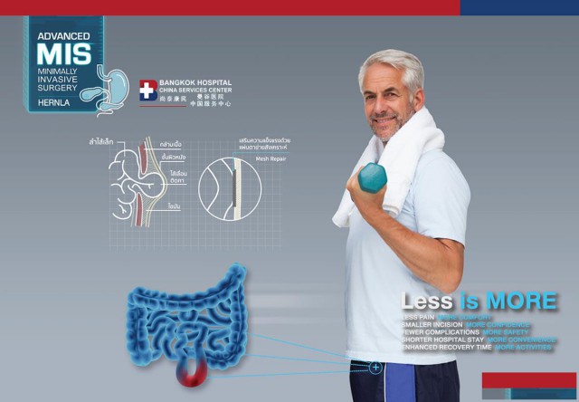 曼谷医院疝气治疗采用完全腹膜外 (TEP) 腹腔镜疝修补术4K 超高清技术, MIS是一种小切口手术,在不损坏腹膜的情况下获得清晰图像,提高准确性,减少对重要器官的损伤、疼痛小、恢复快, 防止疝气复发,增强信心。