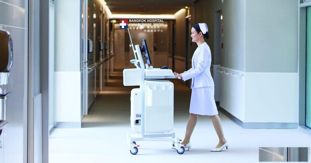 尚泰康民——曼谷医院服务中心认为,配药车是住院护理的重要设备,选择适合的医疗车有效地为患者服务非常重要,目前,智能配药车已在曼谷医院投入使用,每天在规定时间为患者送药。