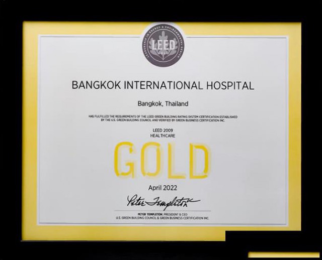 值此之际,曼谷医院国际医院院长Ratthapong Ampanwong和高级执行副总裁Arthit Limpaisan收到颁发的证书,体现了医院在建筑的设计与施工将节约能源、保护环境的理念贯穿于每一个流程,有助于保护未来的世界环境。.