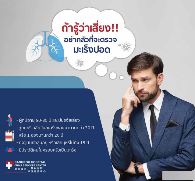 尚泰康民——曼谷医院服务中心建议对高危人群进行肺癌筛查,即: