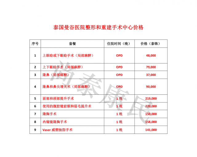 4、如果患者需要留在重症监护室或超出指定标准间,曼谷医院将按实际收取费用(如有);