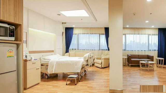 泰国曼谷医院的病房,最小30㎡普通病房,最大600㎡总统套房,当然,总统套房一般人是住不上的,是为皇室成员准备的,为保护患者的隐私所有病房都是单间。