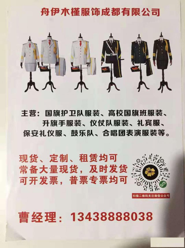 舟伊木槿服饰成都有限公司 专业服装定制服饰,现货国旗护卫队服装服饰
