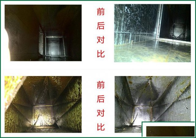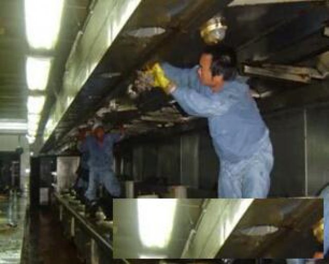 烟道清洗内容包括烟罩表面、烟罩内的灯罩、排风口、排烟口以及电机、灶台表面。烟道清洗的重点是排烟口与烟罩相连处并和烟罩同步平行的排烟道。重点对平行烟道内部进行彻底清洁。采用的主要方法是专业人员进入烟道内部进行清洁。对于排烟口窄小,人工无法进入烟道或由于烟道走身狭窄、人工触及不到无法进行清洁,但又存在着重大隐患的,本公司可利用特殊设备进行清洁,不留死角,并可拍摄清洁前后的对比照片,打消客户的疑虑和担心,消除一切潜在的火灾隐患。风机、风柜与烟道连接的方法一般有两种情况:一种是用帆布相连的软连接,而另一种是直接与烟道相连的硬连接。可提供更换风机、风柜连接帆布的服务。如果是烟道硬连接,我们将与风机、风柜相连的烟道进行彻底清洁。