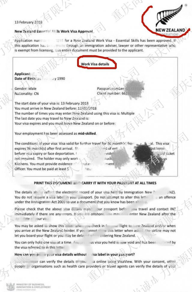 签证类型:工作签证,1-3年。