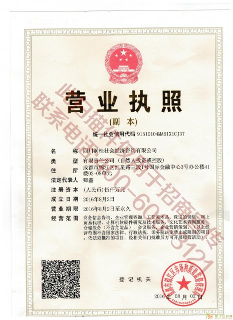 如果您觉得上面关于“中远商品交易中心诚招各级代理”描述资料还不够全面,请联系获取成都招商加盟更多详细资料,联系时请说明是在【知了信息网】看到的信息! 你也可以发布招商加盟信息让更多有需要的人主动联系你!
