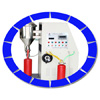 在使用灭火器灌装机的时候,将灭火器瓶放在电子秤上,然后将灭火器加料盖放在灭火器瓶口,打开真空泵,同时打开电动气缸,使干粉到灭火器瓶内;而电动气缸使出料管上下移动,可以加快灌装速度。