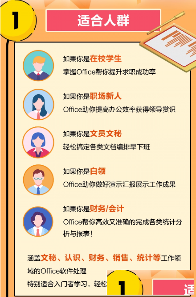 (二)高级图片处理:Photoshop图像处理、去水印、调整照片、更改打印文件、制作图章、辅助PPT制作精美幻灯片,美化及处理图片等。学时:25天左右。常年循环授课,随到随学,学会为止,学不会循环免费重复听课。第三种:办公新媒体课程(新媒体班)常年循环开课