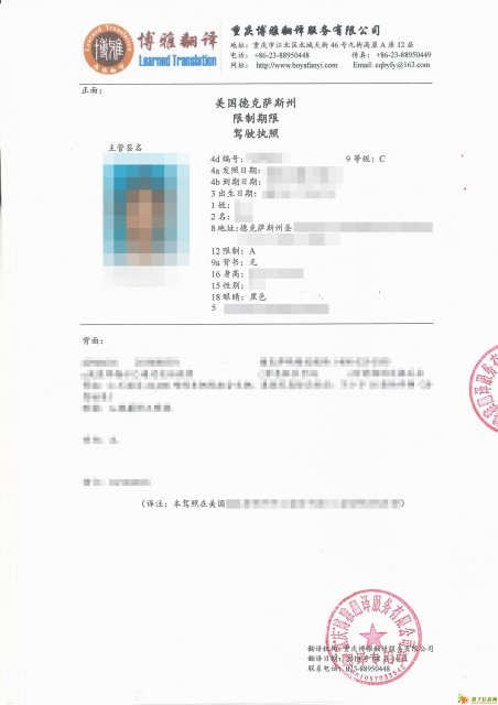 国外驾驶执照翻译-国外驾照换国内驾照-重庆博雅翻译公司-车管所认证驾照翻译机构