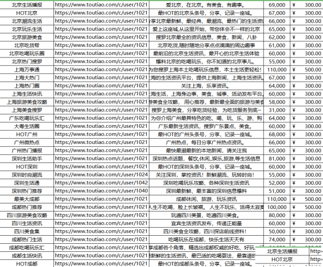 我们从事自媒体行业多年,另有独家今日头条大号、Dou音红人、快手红人、微博微信大号、百家号、大鱼号、企鹅号、小红书等全网社交平台资源,自营粉丝超过1000万,全网粉丝覆盖1亿+,是你最佳新媒体合作伙伴!