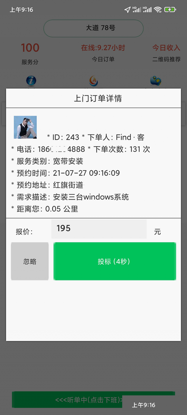 代驾软件,车主可通过电话下单或一键下单呼叫代驾,代驾师傅接单后三分钟内到达代驾出发点,滑动开关开始等待车主。
