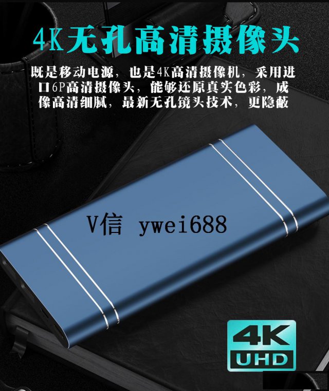 2.既是移动电源,也是4K高清摄像机,采用进口6P高清摄像头,能够还原真实色彩,成像高清细腻,无孔镜头技术,更隐蔽