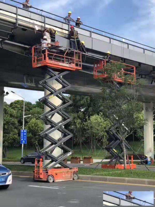 1、剪叉类升降机:垂直升降,载重能力强,6-14米可选,电动自行走,高空作业可行走,性能好,作业面积大,晚上充电,白天使用。