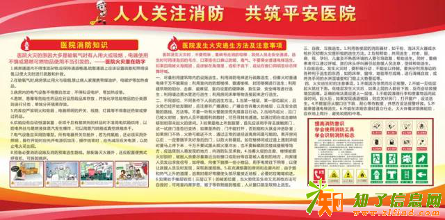 医院内所有区域禁止吸烟,消防安全重要区域要设置明显的禁止烟火标志。医院内消防器材、消防栓必须按消防管理部门的要求在明显位置放置。设立消防安全制度,包括巡逻、逐级防火检查,进行消防知识的普及,进行专门的消防训练和考核,做到经常化、制度化。员工要做到会使用灭火器材灭火、会电话报火警及会组织人员疏散。