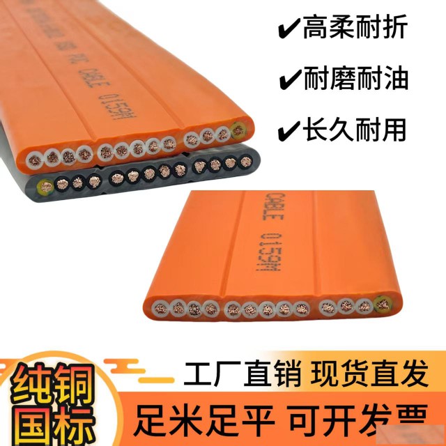 性能特点高柔性与耐折弯:电缆的扁平设计以及采用的柔软材料,使其具有良好的柔韧性,能在天车行车频繁的移动和弯曲过程中保持良好的性能,不易断裂,可承受多次弯曲和扭转而不影响其电气性能。