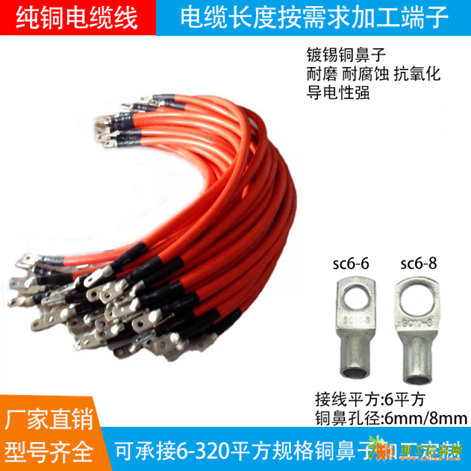 产品主要应用在电镀设备和作为焊机连接线,一般使用时产品直接与电源相接,产品额定电压等级为450/750V,也可以根据客户需求加强绝缘,用于0.6/1KV电压等级下。导体电阻标准严格执行GB/T3956-2008,生产范围为10-400平方。