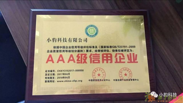 小豹科技是一家获得 中国3.15诚信企业, AAA及信用企业, 质量.服务.诚信AAA企业, 全国重合同守信用AAA企业,等四项证书.
