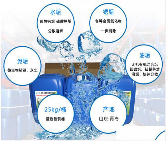 5、除垢彻底,能将污垢全部溶解成水溶液排出系统,没有固体颗粒残留于系统内。